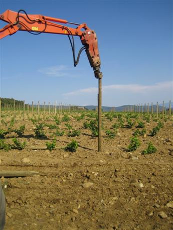 Messa a dimora di pali intermedi di pino trattato - Azienda Camillano Diffusione S.r.l., Moltacino (Toscana).
